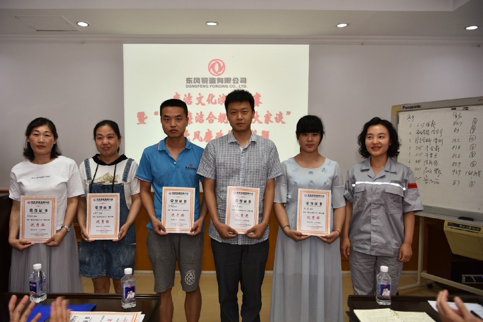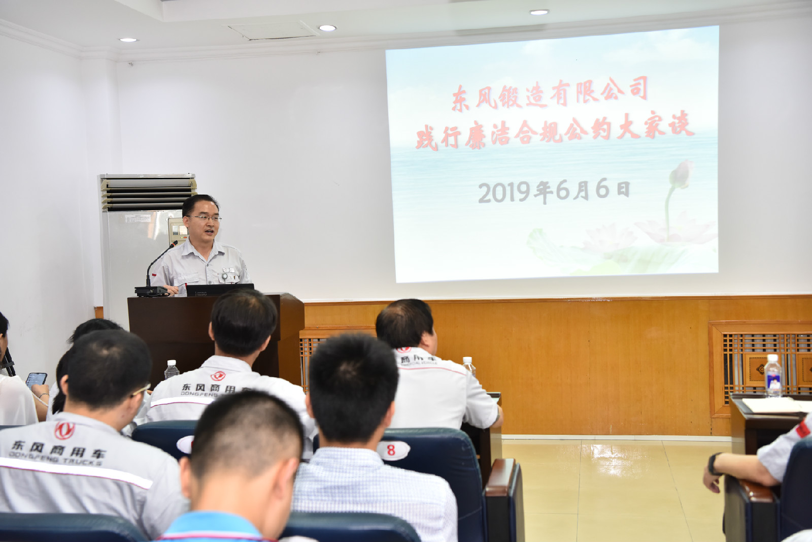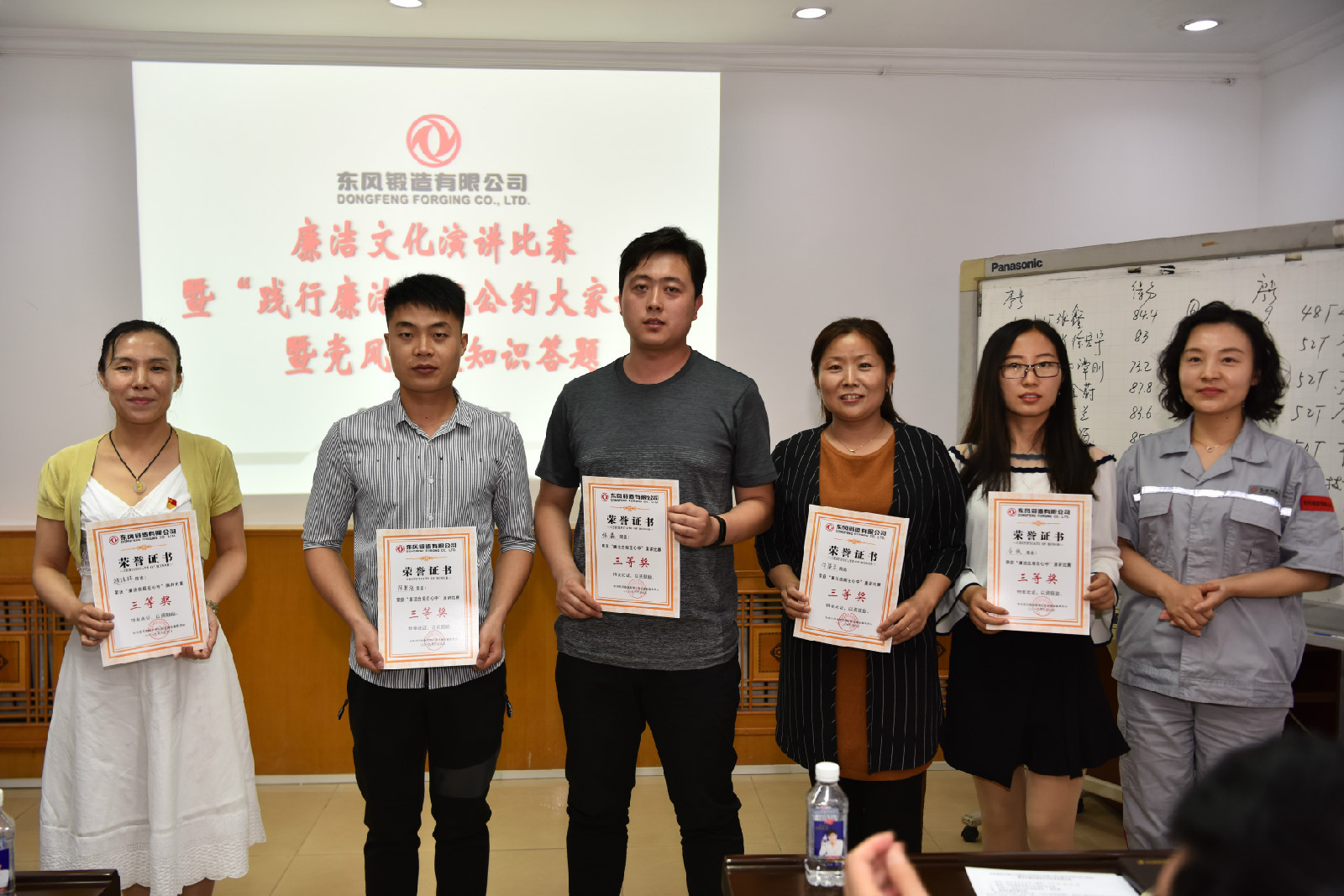 【編者按】6月6日,鍛造廠選派產品研發科張紹忠、張鑫、李欣,裝備管理科蘇梓豪,清校車間牛軍蘭,備料車間李艷麗六名同志參加了東風鍛造有限公司組織開展的“廉潔合規在心中”主題演講比賽及“踐行廉潔合規公約大家談”活動。他們通過自己的親身經歷、身邊同事的感人事跡、學習工作中的體會感悟,真情道出了“廉潔:快樂、幸福人生的密碼”這一主旋律。